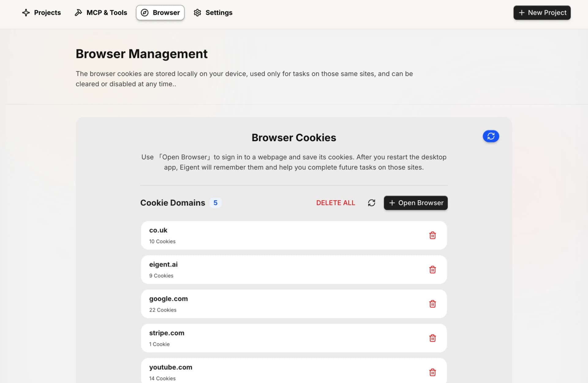 Eigent comes with massive built-in Model Context Protocol (MCP) tools (for web browsing, code execution, Notion, Google suite, Slack etc.), and also lets you install your own tools. Equip agents with exactly the right tools for your scenarios – even integrate internal APIs or custom functions – to enhance their capabilities.