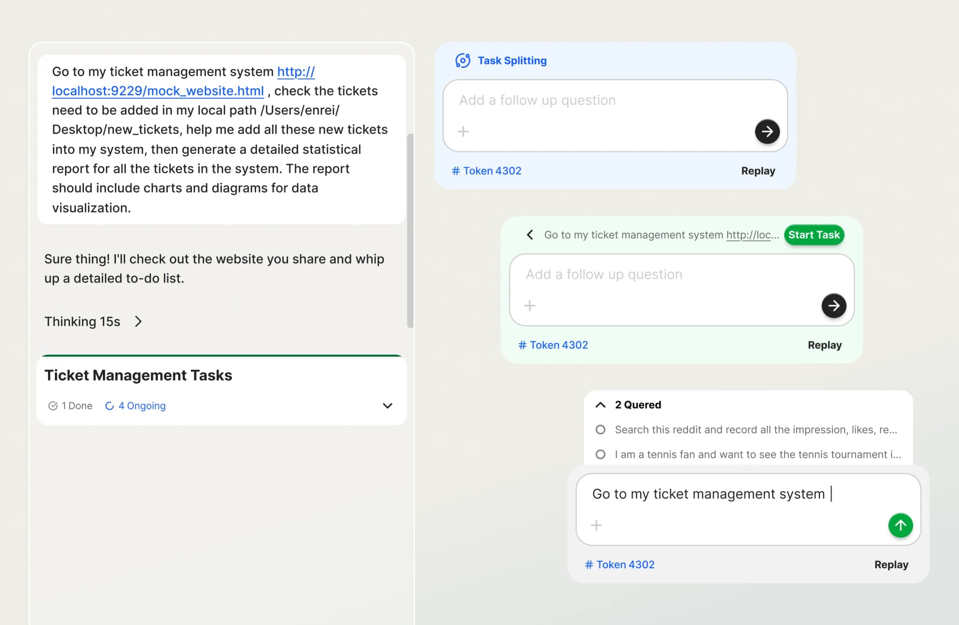 Designed and developed a new chat interface capable of handling complex, multi-turn conversations. I implemented a task-queuing system that allows users to line up multiple operations seamlessly without interrupting the flow of the current dialogue.